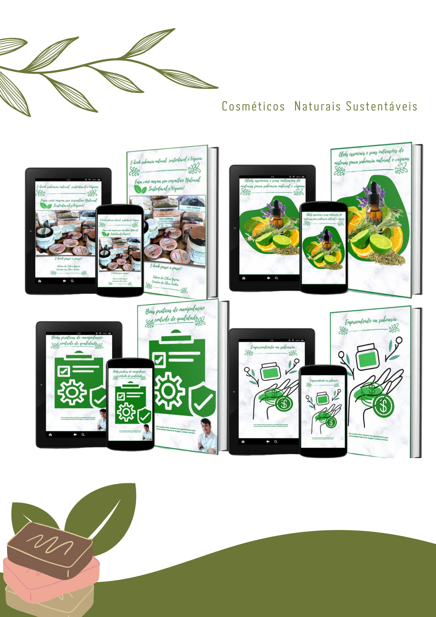 Hoje, mais do que nunca, está comprovado o quanto os aditivos sintéticos, conservantes, flatos, parabenos, alumínio, chumbo e tantos outros aditivos com nomes que muitas vezes nem sabemos o significado, fazem mal à nossa saúde! No entanto, estão lá, contidos nos desodorantes, xampus, sabonetes, e hidratantes industriais! Porém, o problema ainda vai mais além, o uso contínuo desses produtos, também têm levado à contaminação dos rios, lagos e lençóis freáticos.Além disso, as garrafas pets descartadas na natureza, têm causado uma grande quantidade de resíduos no Meio Ambiente! E sabemos que o plástico leva muitos anos para se decompor! Enfim, sãos muitos os malefícios!Por isso, mudar nosso hábitos de consumo é urgente!Em contrapartida, os cosméticos naturais são produzidos de forma artesanal, usando aditivos naturais como óleos essenciais, extratos vegetais naturais, manteigas vegetais, e conservantes naturais!Sim! É possível cuidar da nossa higiene pessoal sem agredirmos nossa saúde e ainda preservarmos o Meio Ambiente!Além disso, cada vez mais pessoas estão interessadas em produtos que ajudem a cuidar do Meio Ambiente e da saúde delas. Por isso, cada vez mais pessoas estão migrando para os Cosméticos Naturais Sustentáveis!Aproveite e conquiste clientes em potencial que estão em busca desses produtos!